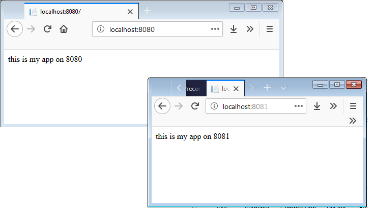 I suggest ports 8080 and 8081. If all has gone according to plan, you should be able to open them both up in your web browser like so: