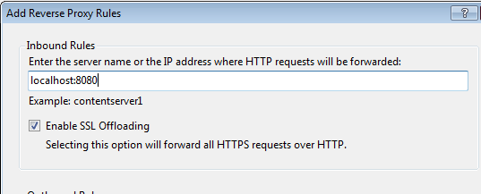 Click “Add Rule(s)…” and select “Reverse Proxy”. If you don’t see Reverse Proxy, you need to go back and install ARR (and perhaps reboot).