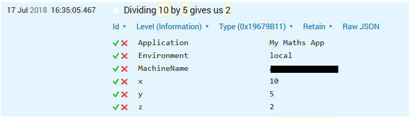 .Information("Dividing {x} by {y} equals {z}", x, y, z);